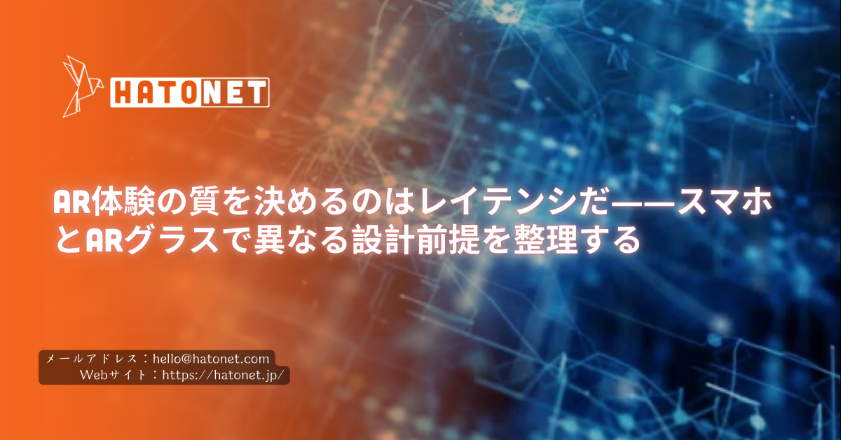 AR体験において、ユーザーが最初に違和感を覚える原因の多くは、視覚表現の粗さではなく、レイテンシです。オブジェクトの位置がわずかに遅れて追従する、固定されていたはずの情報がずれる。この小さな違和感の積み重ねが、AR体験全体の評価を下げます。本記事では、AR体験におけるレイテンシ設計を技術的に分解し、ARスマートフォンとARグラスで設計思想がどう変わるのかを整理します。
